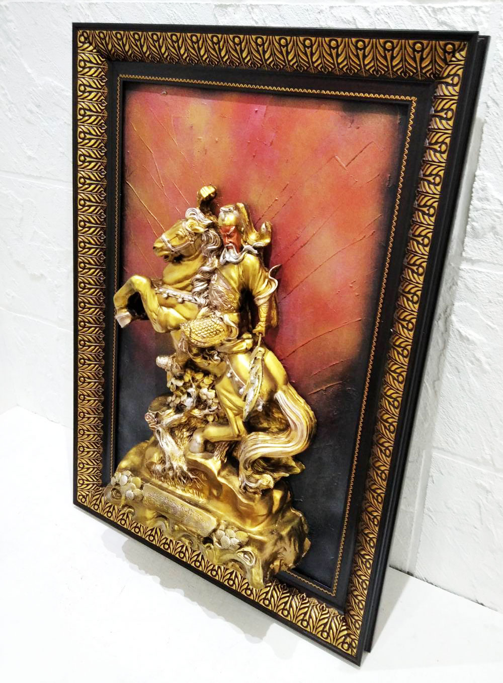 ภาพมงคลเรียกทรัพย์เสริมดวงการงาน การค้าขายและทำธุรกิจ เอาชนะคู่แข่ง สร้างความเจริญก้าวหน้ามั่นคง ที่นิยมอันดับต้นๆ ได้แก่ รูปภาพเทพเจ้ากวนอูปางขี่ม้าออกศึก มือซ้ายถือทวนมังกร ซึ่งเป็นภาพขนาดใหญ่แขวนติดผนังในห้องทำงานหรือห้องรับแขกเพื่อเสริมฮวงจุ้ย เพิ่มความเป็นศิริมงคลรูปภาพเทพเจ้ากวนอู ของร้าน "permsuk.com" เป็นงานหล่อเรซิ่นนูนสูงขึ้นรูปพร้อมลงสีอะคริลิคและใส่กรอบรูปโมเดิร์นสวยงาม นิยมมอบเป็นของขวัญเปิดกิจการใหม่ ของขวัญขึ้นบ้านใหม่ หรือของขวัญวันเกิดผู้ใหญ่ที่เคารพนับถือ